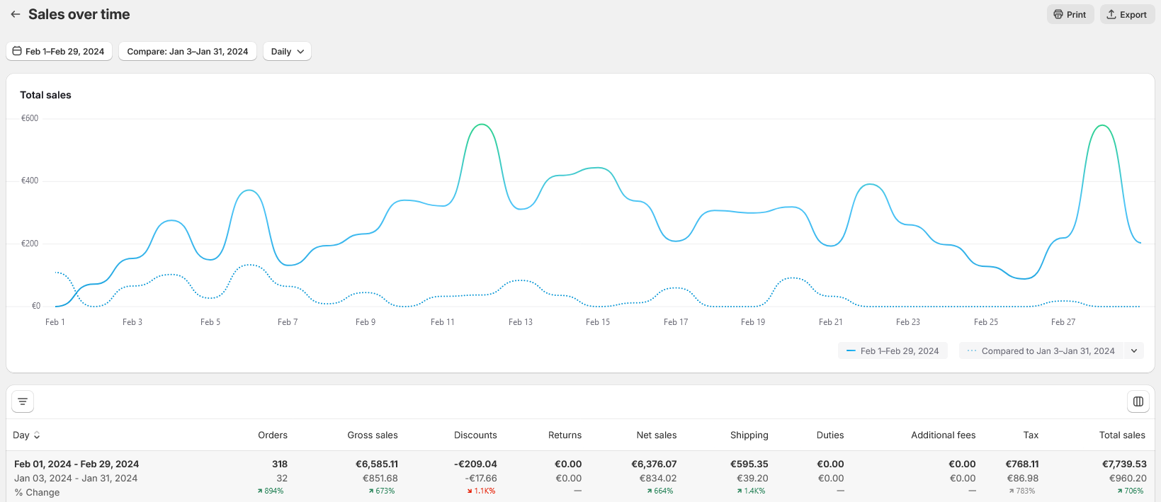 Prvi mesec smo ustvarili več kot 7.700 € prodaje. Stranki smo povečali promet za več kot 700 %. Lani je v enakem obdobju prodala za samo 960 € (brez oglaševanja).